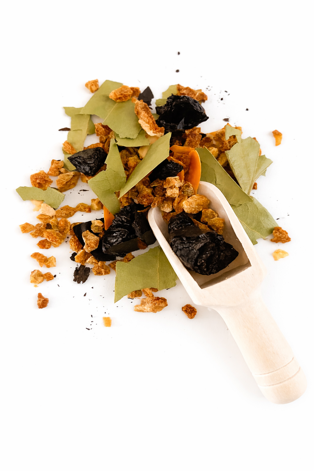 Elle est idéale en fin de repas ou lors d’un moment de fatigue douce. Le citron noir et l’orange douce soutiennent la digestion, tandis que le macis et la feuille de cannelle apportent une chaleur réconfortante et stimulante, sans effet excitant.